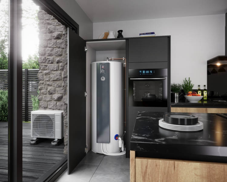 Il fonctionne grâce à une pompe à chaleur qui puise les calories de l'air extérieur et les utilise pour chauffer l'eau dans le réservoir.
